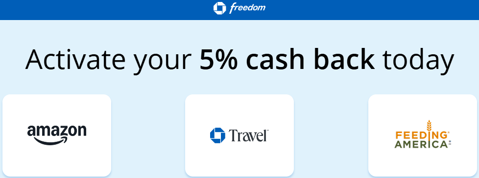 Chase Freedom Flex (Chase Freedom too) | Amazon (includes Whole Foods), Chase Travel, Feeding America | 5x/5% back, up to $1500 in the quarter (7500 points total) |